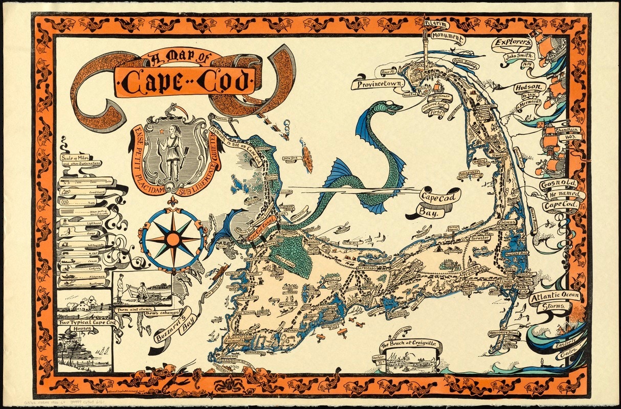 A fun 1926 Map of Cape Cod created by Mélanie Elizabeth Leonard (1868-1933).